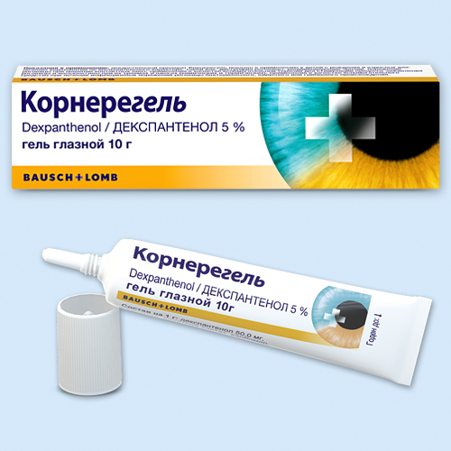 Для увеличения продолжительности контакта водного раствора декспантенола с эпителием роговицы в составе препарата Корнерегель содержится карбомер, который из-за высокой молекулярной массы не проникает в ткани глазного яблока и не абсорбируется в системный кровоток.