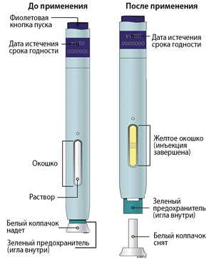 Важно! Если после извлечения автоинжектора окошко не стало желтым либо вам кажется, что инъекция препарата продолжается, значит вы ввели неполную дозу. Незамедлительно обратитесь к Вашему лечащему врачу.