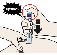 И) Когда Вы будете готовы к инъекции, нажмите на фиолетовую кнопку пуска. При этом Вы услышите щелчок.