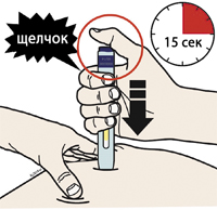 К) Продолжайте давить на кожу. Инъекция может занять около 15 секунд.