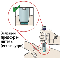 Примечание: после того, как вы удалите автоинжектор с кожи, игла будет автоматически покрыта.