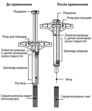 Съемная крышка предварительно заполненного шприца и автоинжектора (шприц-ручки) содержит сухой натуральный каучуковый латекс, который может вызывать аллергические реакции у лиц, чувствительных к латексу.