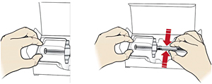 Важно! Необходимо протолкнуть автоинжектор вниз до конца, не касаясь фиолетовой кнопки пуска до тех пор, пока не будете готовы сделать инъекцию.