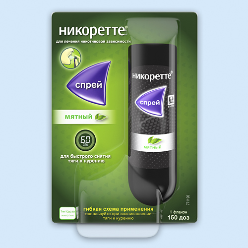 Клинические исследования показали, что препараты для заместительной никотиновой терапии позволяют курильщикам воздержаться от курения, облегчая симптомы "отмены". Исследование разовой дозы у 200 здоровых курильщиков продемонстрировало, что при использовании 2 доз спрея по 1 мг желание закурить снижается, начиная с первой минуты после применения спрея и в значительно большей степени, чем при применении таблеток для рассасывания, содержащих никотин. По сравнению с никотиновой резинкой жевательной или таблетками для рассасывания, абсорбция никотина из спрея для слизистой оболочки полости рта более быстрая и, основываясь на накопленном опыте применения заместительной никотиновой терапии, это приводит к более быстрому снижению тяги и других симптомов.