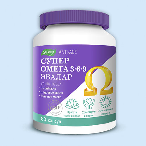 Биологически активная добавка к пище Супер омега 3-6-9 способствует улучшению работы сердца, мозга, глаз и суставов, уменьшению воспалительных процессов в организме; поддержанию в норме уровня холестерина; увлажнению кожи и блеску волос, а также anti-age (антивозрастному) эффекту (омоложение и оздоровление организма).