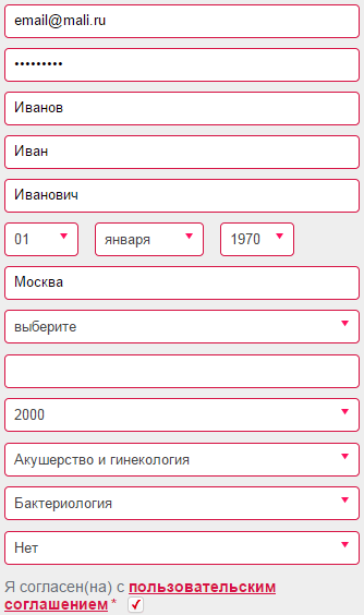 Регистрация доктораДля регистрации заполните форму. * - поля обязательные для заполнения ![]() Образец заполнения
