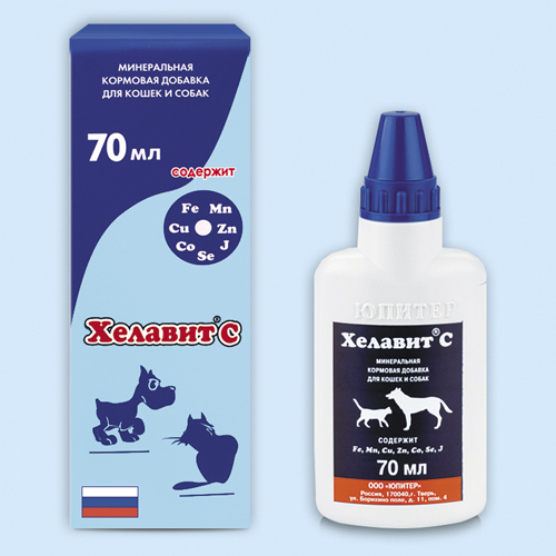 Хелавит С устраняет дефицит микроэлементов, стимулирует эритропоэз, нормализует обмен веществ, повышает неспецифическую резистентность организма. Применение добавки улучшает рост и развитие молодняка, способствует лучшей сохранности поголовья, улучшает состояние шерстного покрова кошек, собак и пушных зверей.